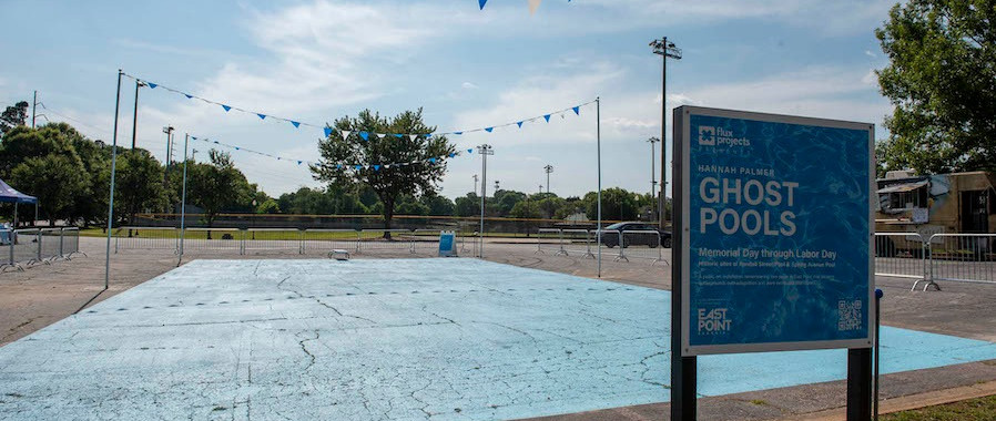 A public history and art project, Hannah Palmer's "Ghost Pools" — a multimedia art installation that explores Atlanta’s history with public swimming by creating temporary memorials to two pools in East Point that became a battleground over integration — aimed to create a shared understanding of what happened to East Point’s Jim Crow-era swimming pools; how they were funded, designed, litigated, defunded, and ultimately abandoned.
